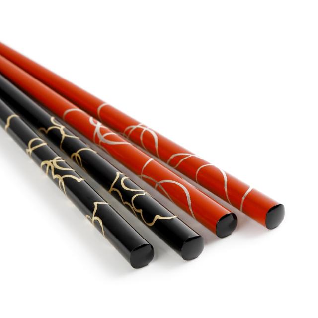 お箸を代表する福井県小浜の箸職人と輪島塗の職人たちのコラボレーションで誕生した輪島塗夫婦箸です。輪島塗ならではの塗り肌の良さ。
