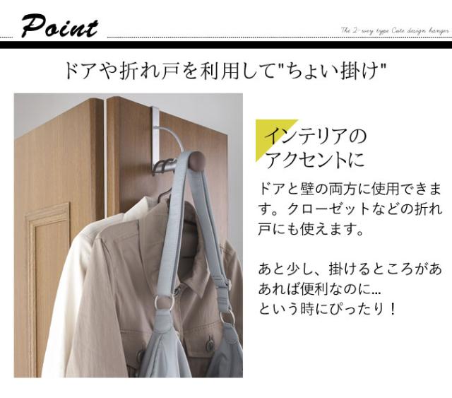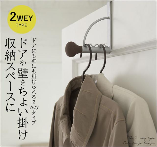ドアにも壁にも使える2WAYタイプのハンガーです。クローゼットなどの折れ戸にも使えます。
