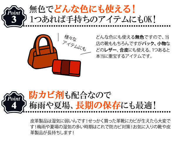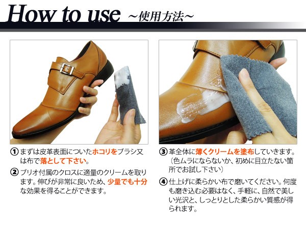 ▼SHOPをお気に入りに登録美しい艶と、しなやかな革靴へと導く天然靴クリーム。「ビーズワックス」「ヒマワリワックス」「ホホバオイル」の 3つの天然成分が皮革表面に硬く透明な薄い膜を作ることで、持続性のある光沢と滑らかな感触を与えます。保湿性に優れ、乾燥やひび割れを防ぎ、革製品を保護します。また、カビ防剤を配合しているので、湿気の多い時期や夏場、長期保存にも最適です。【ご使用・ご購入上の注意】油分を含んだクリームなので、元の色より多少濃くなる場合もあります。素材によっては色が濃くなり戻らないことがあります。シミや色落ちする皮もあるので、目立たない部分で試してからご使用ください。スエード等の起毛革には使えません。CHECK┗他のシューケアを見てみる♪