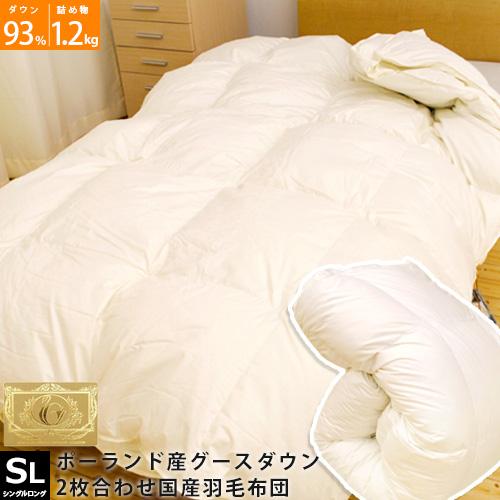 羽毛布団 シングルロング ロイヤルゴールド ポーランド産ホワイトグース デュエットタイプ 2枚合せ日本製