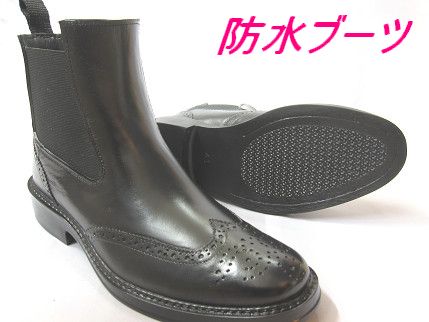 当日発送 可能【約35%OFF】メンズブーツ<防水><サイドゴア>レインブーツ ビジネスシューズ ウィングチップ ブラック