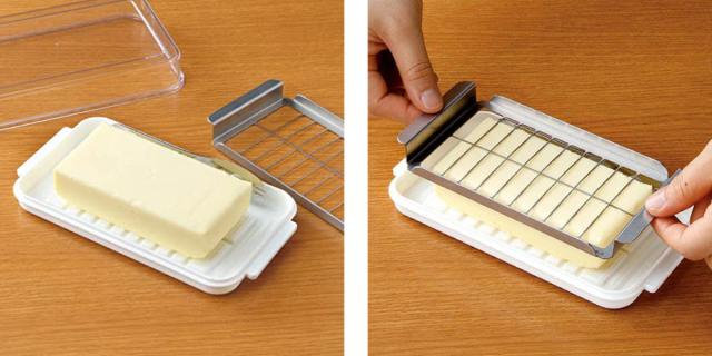 ※バターが硬いとカッターが変形する恐れがあるので、常温に戻したバターをカットして下さい。