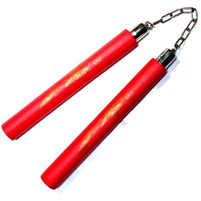 カンフー武具・赤色スポンジ・ウレタン・ヌンチャク(廉価版) 遊離ベアリング軸承リング使用