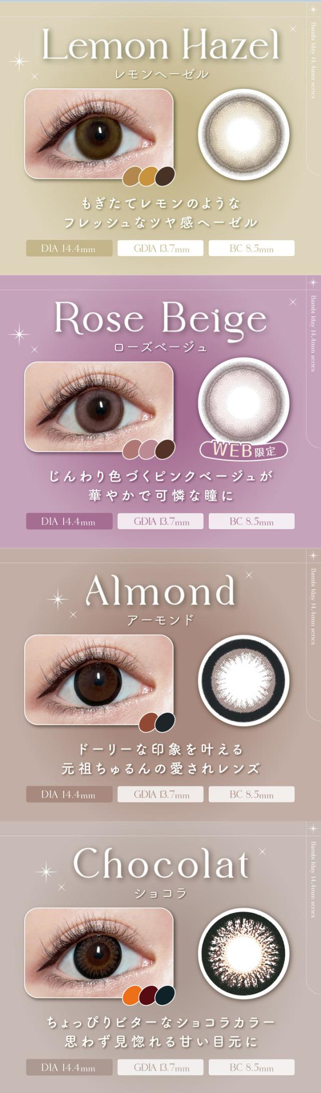 ■カラー:アーモンド、ショコラ、カシスブラウン、パールグレー、クリームピンク、ミルクベージュ、スワンブルー、レモンヘーゼル、ローズべージュ、スワングレー、ハニームーン、セサミムーン、ブルーベリームーン