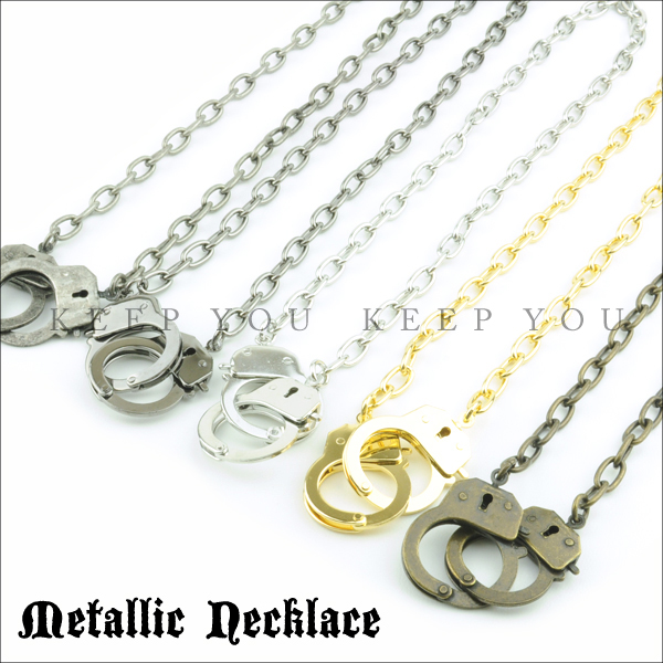 【メール便対応】手錠 ネックレス (小) メタルネックレス 5色展開【パンク ロック ヘビメタ ネックレス アクセサリー】┃