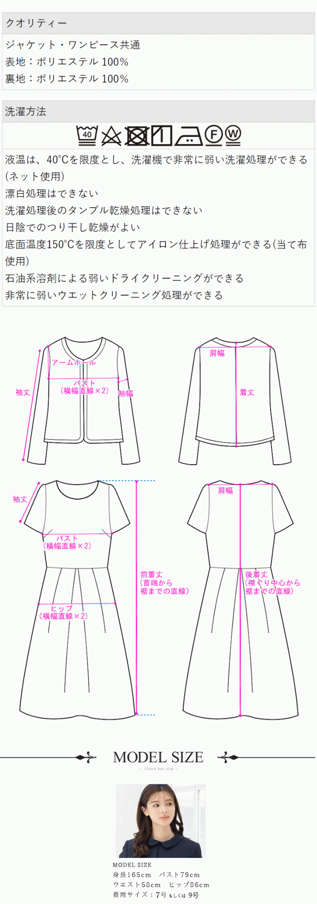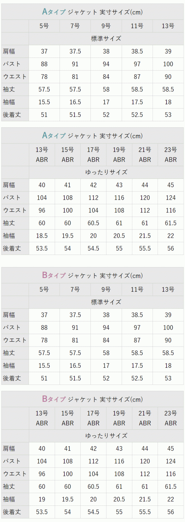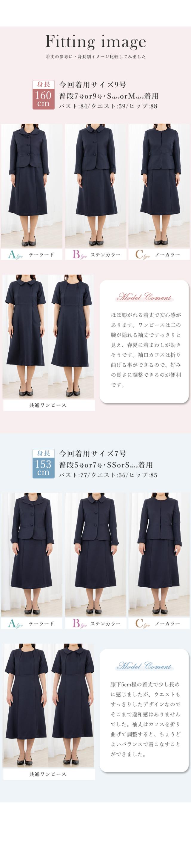- 注文して翌日には届きました!早くて助かりました! 太めの体型なので、腕が目立たないようAタイプにしました。全体的にワンサイズ大きめを購入しました。ジャケットの袖丈、ワンピースの着丈は調整が必要なのは了...