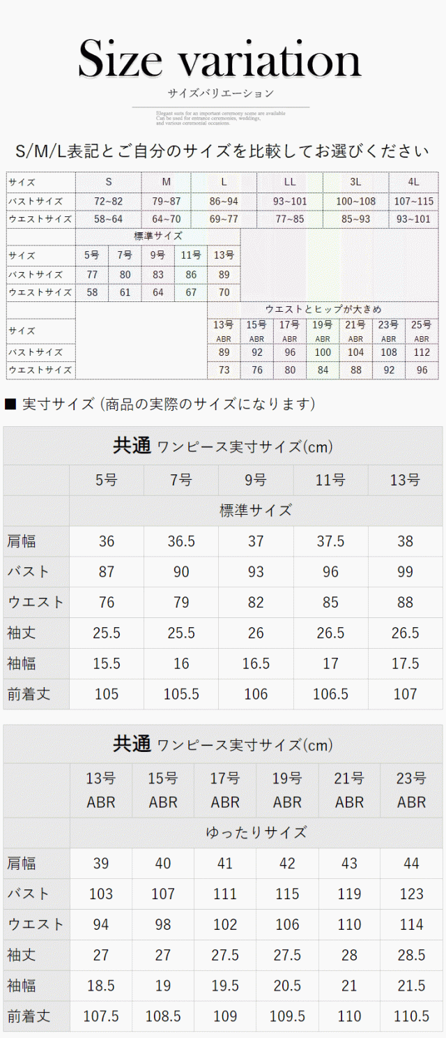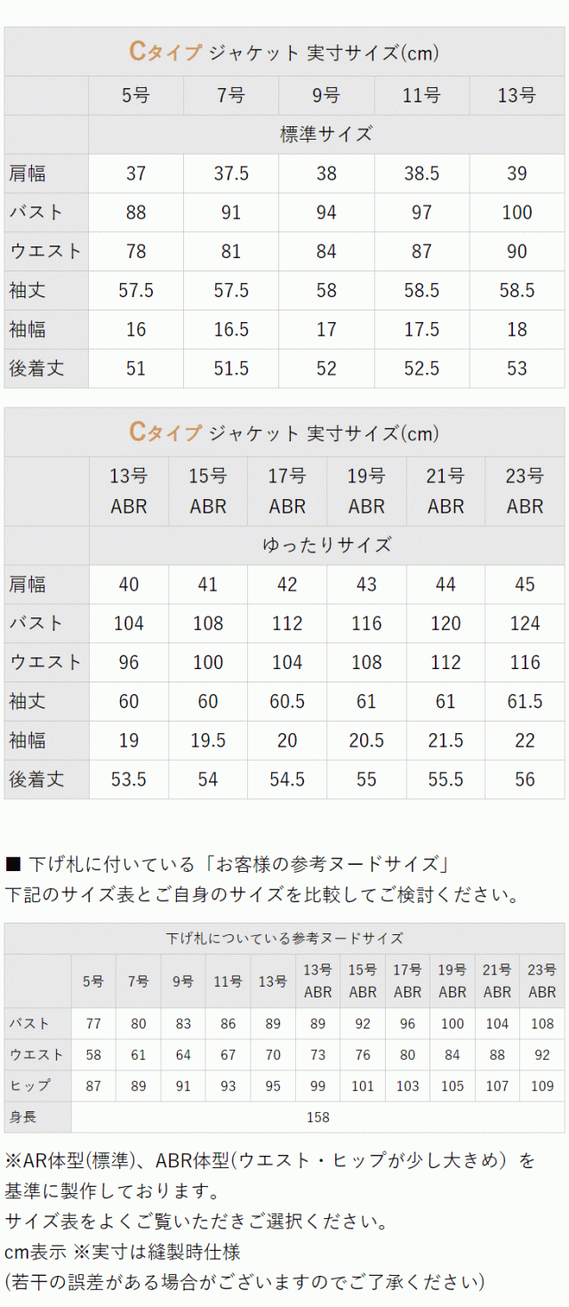 5号・7号・9号・11号・13号・15号・17号・19号・21号・23号 小さいサイズ?大きいサイズ(ラージサイズ)。ゆったりとしたABR体あり |