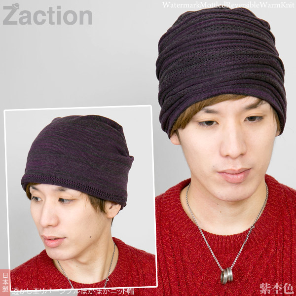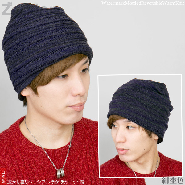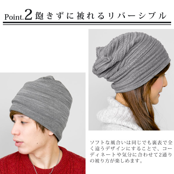 ニット帽 メンズ [メール便可] 帽子 レディース 秋冬 ダイナホット / 透かし杢リバーシブルほかほかニット帽 日本製