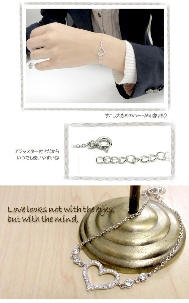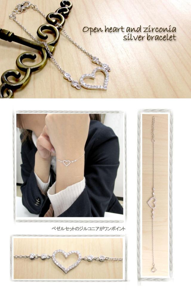 オープンハート ラインストーン シルバーブレスレット 16.5〜19cm ブレスレット シルバー925 銀 キュービックジルコニア かわいい 可愛い