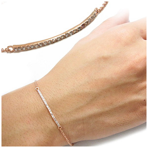 ジルコニアプレート ピンクゴールド シルバーブレスレット 16cmもしくは18cm