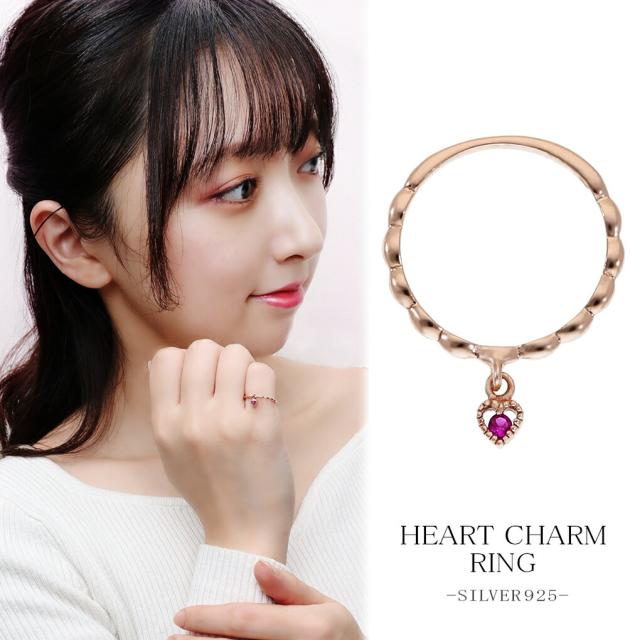 ハート チャーム ジルコニア ピンクゴールド カラー シルバー リング 指輪 3〜9号 レディースリング ピンキーリング 華奢 細身 細い 細め さりげない