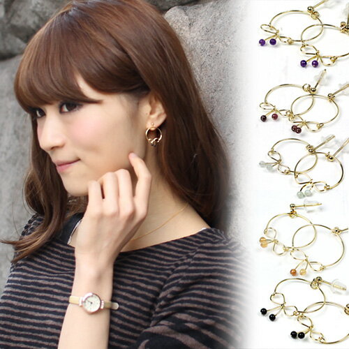 「なでしこ」 リボンストーン付きピアスパワーストーン アメジスト ヘソナイト ガーネット アマゾナイト オニキス