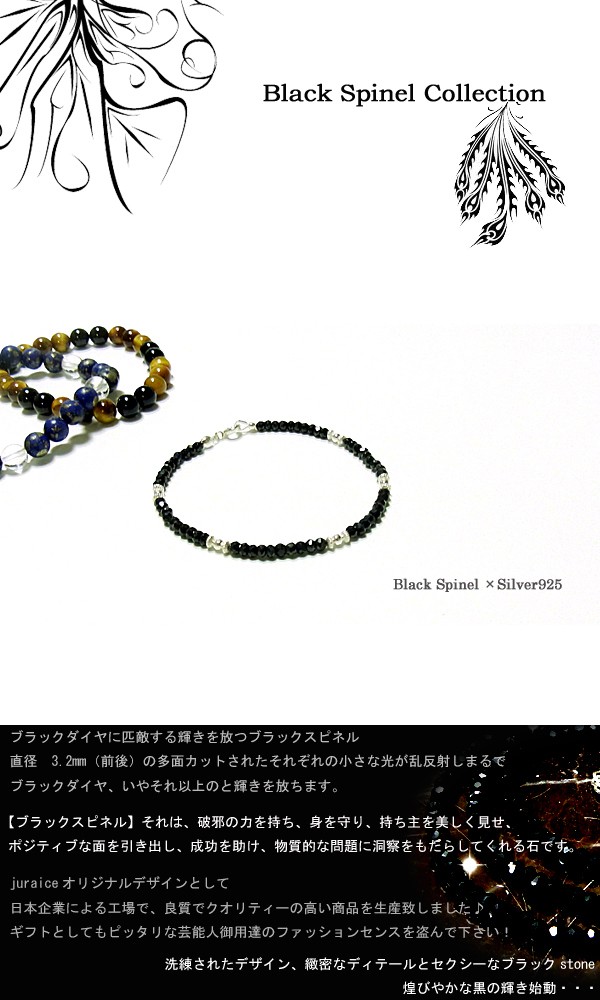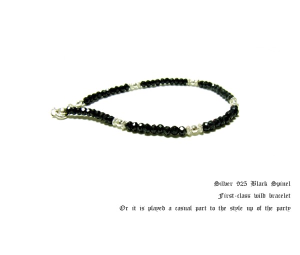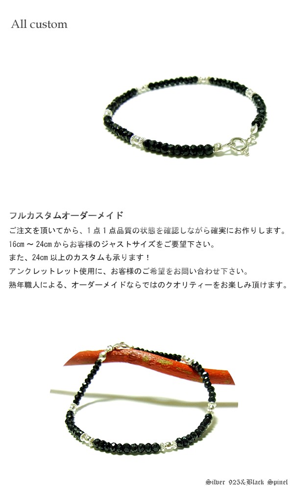 即納 送料無料【パワーストーン シルバーアクセサリー】ブラックスピネル&シルバー925 パワーストーンブレスレット/アンクレット