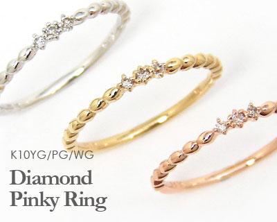 ダイヤモンド ピンキーリング リング K10YG/PG/WG 10k 10金
