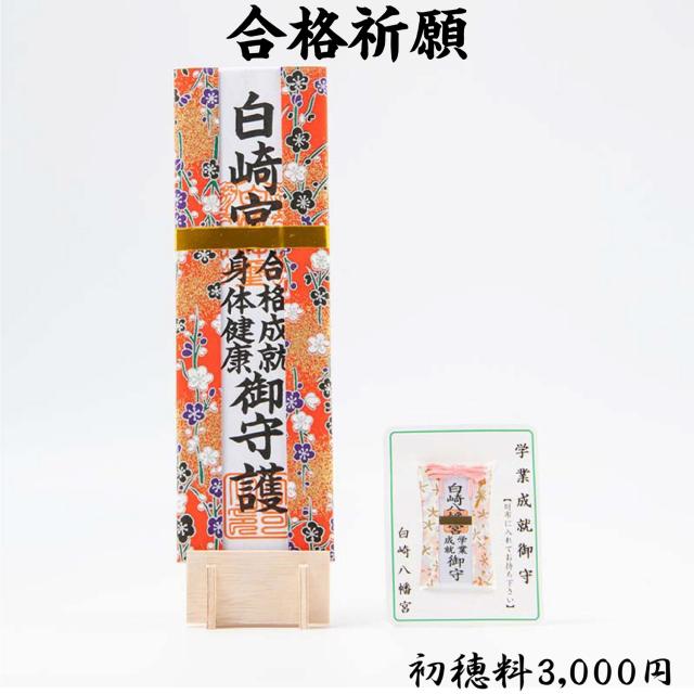 お申込みをいただいた後、大安の佳き日に白崎八幡宮のご神前にて、白崎八幡宮のご祭神であらせられる應神天皇・神功皇后・仲哀天皇をはじめとし、配祀神でもある「学問の神さま菅原道真公」及び境内末社に鎮座する「みちびきの神さま猿田彦大神(高得点をみちびく)」のご神徳をお頒ちし、皆様の合格祈願をご奉仕いたします。