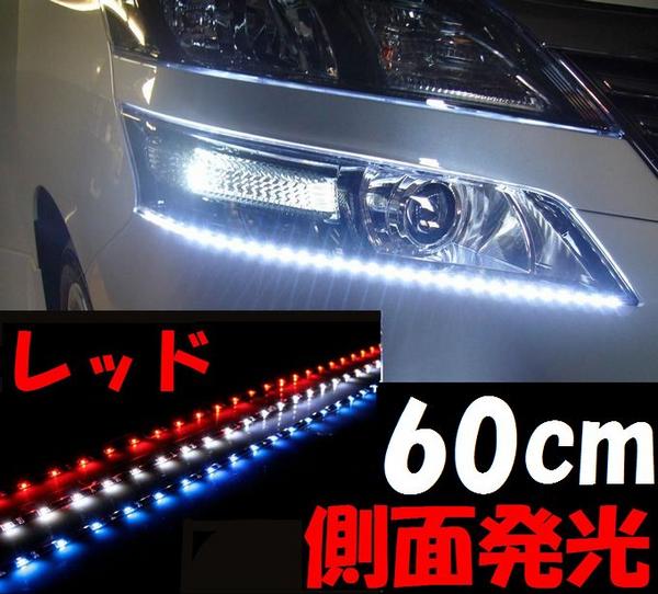 側面 (60cm) 赤 側面発光LEDテープ レッド 5050 SMD 切断可能 カット可能 防水 汎用 曲面対応 アイライン LEDテープライト アンダーライト 車 バイクに 取り付け方は簡単 LEDイルミ アンダーネオン アンダーイルミネーション