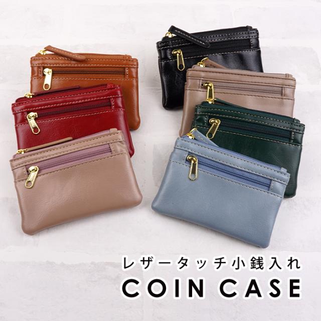 コインケース 小銭入れ メンズ レディース ダブルファスナー フロントポケット付き フェイクレザー レザータッチ