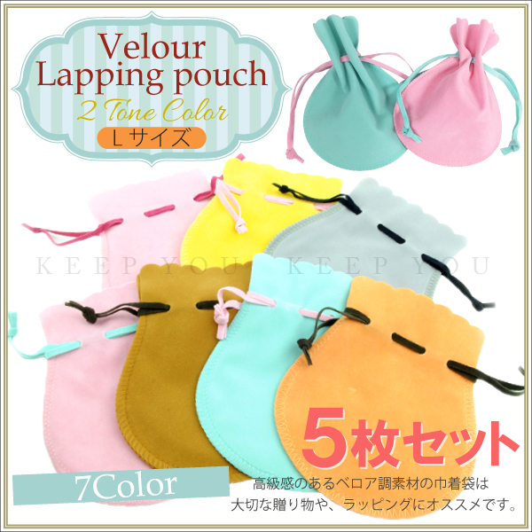 【メール便対応】2トーン プレゼント包装 Lサイズ同色5枚セット ラッピング巾着袋 ベロア調 2色タイプ きんちゃく 保存 保管 アクセ┃