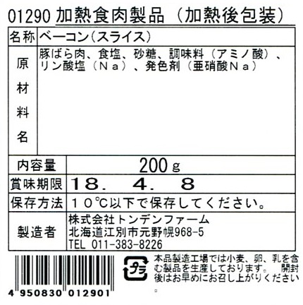 お取り寄せ 単品 北海道トンデンファーム 石狩川ベーコン スライス(200g)/ ウィンナー ソーセージ ビール 自宅用 珍味 自分用 まとめ買い BBQ 家庭用 単体 種類 お取り寄せ 人気 直送 北海道産 肉