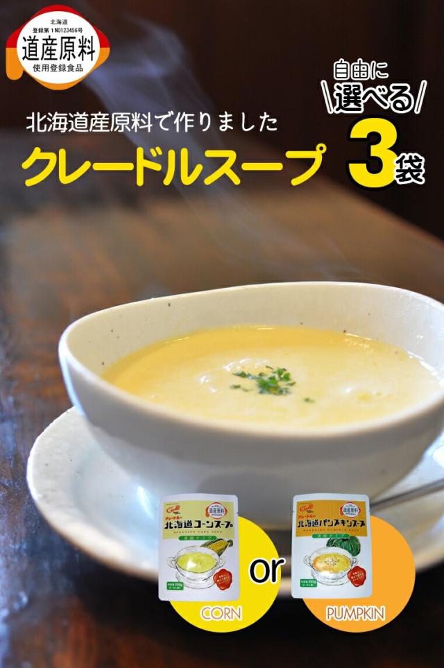 【ゆうパケット/送料無料】お試し 北海道 クレードル 選べるスープ3袋セット / ポスト投函 手軽 コーンスープ プレゼント ギフト コーン とうきび とうもろこし パンプキン かぼちゃ