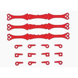 ローラーを取り付けるFRPなどとシャーシに間に挟み込んでダウンスラスト角を調節できるプレートです。1度、2度、3度の3種類の角度調整プレートにより、+3度から−3度まで1度単位で微妙なセッティングが可能。さらに、ローラーの角度を調節できる6種類のワッシャーもセットしました。プレートやワッシャーはマシンのアクセントになるレッドカラー。3タイプの角度調整プレートと左右2個ずつの6種類の角度調整ワッシャーをセット。