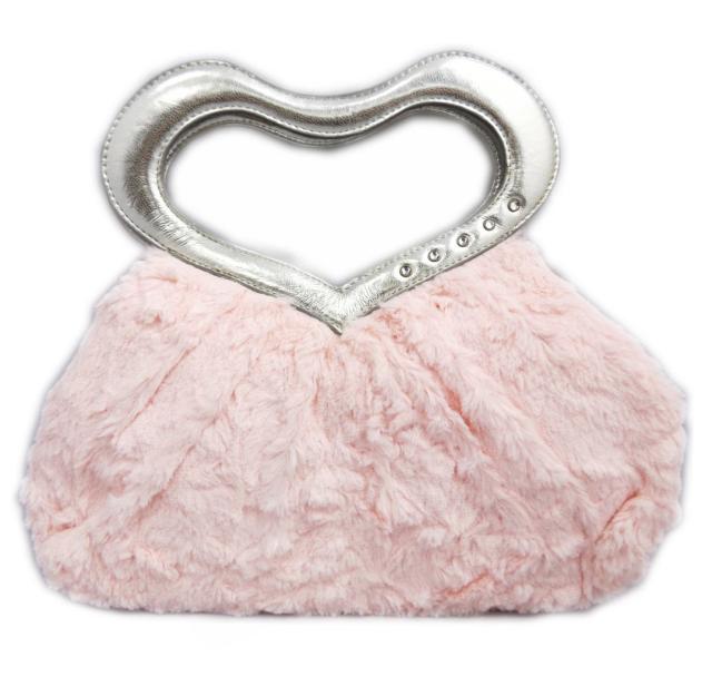 【訳有り=少難あり】 バッグ ファー シルバーハート ピンク 卒業式 袴 洋服 デニム ふわふわ