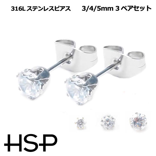 激安特価88%OFF★シルバー色316Lステンレス ラウンドクリアジュエル3/4/5mmの3サイズ ペア両耳ピアスセット/男女兼用/軟骨