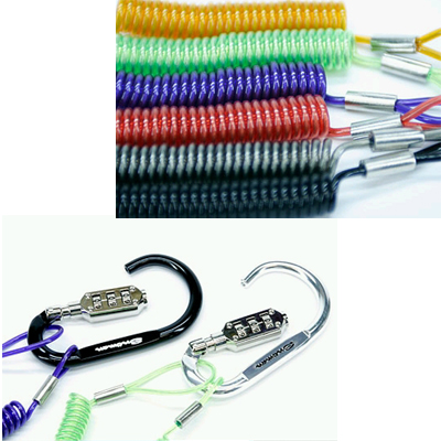 盗難防止用ワイヤーロック、ナンバーロックのカラビナタイプを採用。