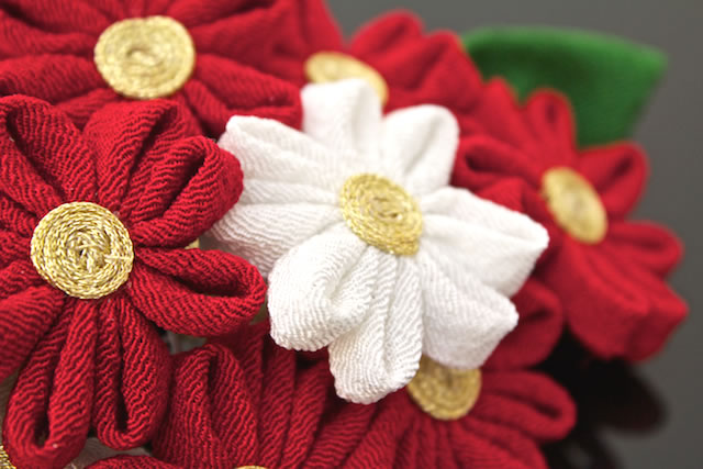はんなりとした質感のつまみ細工は、職人の手でひとつひとつ丁寧に作り上げられクオリティの高いデザインです。