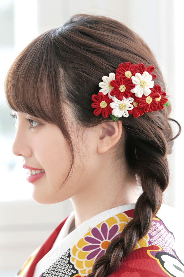 成人式 髪飾り 成人式の髪飾り つまみ細工 卒業式 七五三 振袖 赤 花 正絹 コーム 髪留め ヘアアクセサリー 和装