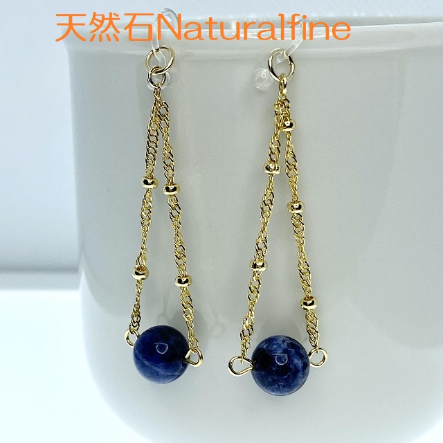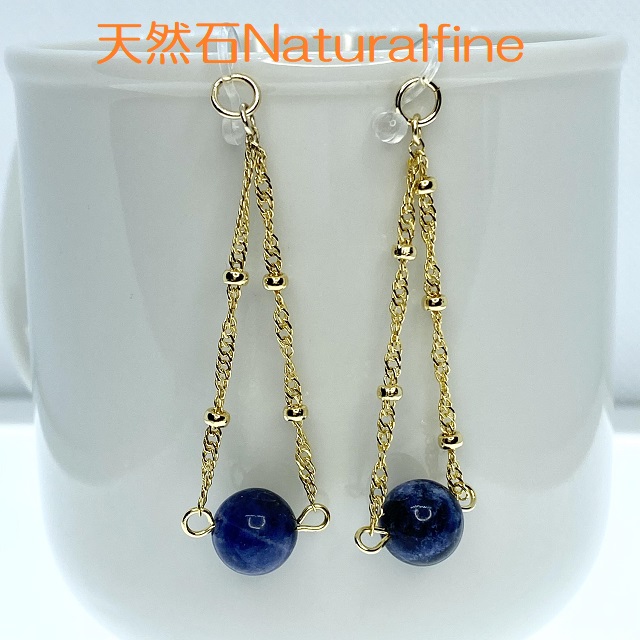ピアス ソーダライト 天然石 チタン チェーン イヤリング アレルギーフリー パワーストーン 身を守る守護石