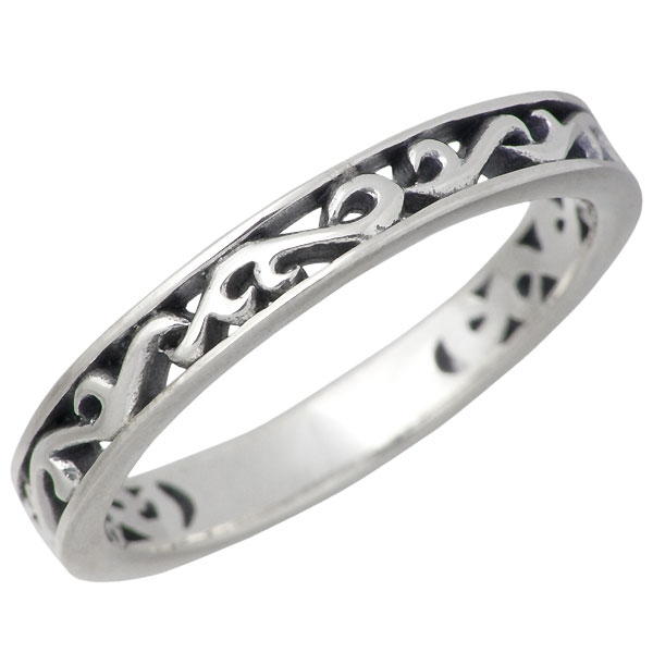 シャープな平打ちリングにアイビー(植物の蔦)の透かし彫りを施したシルバーリング。