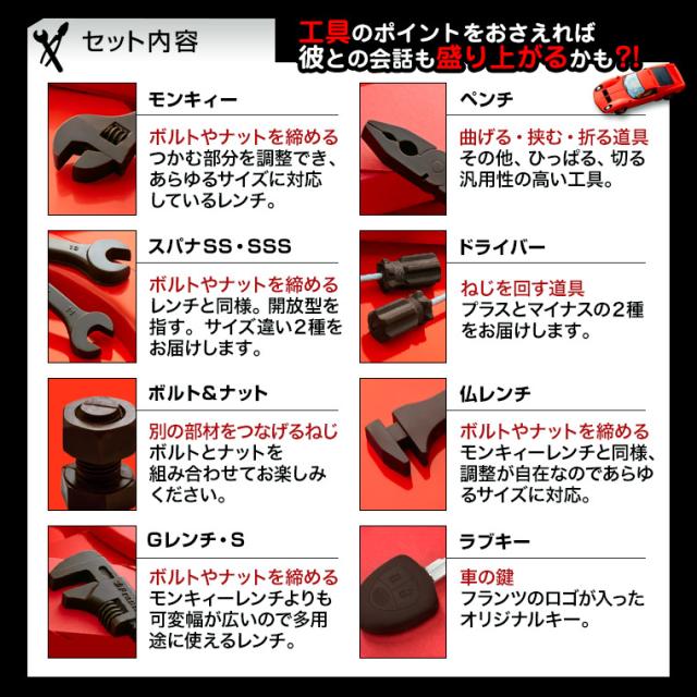 神戸フランツの人気シリーズ「カーマニア®セット」にプレミアムバージョンが限定発売!ペンチやスパナ、GレンチSやボルトナット、仏レンチなど、人気のチョコファクトリーシリーズを専用のツールBOXに詰め込みました。