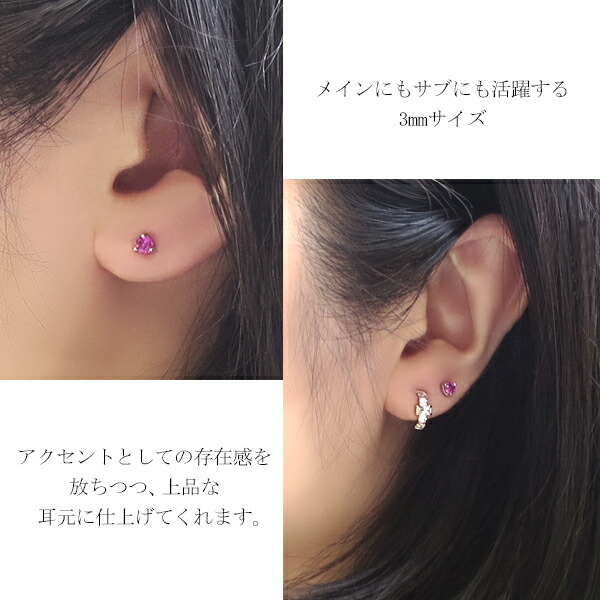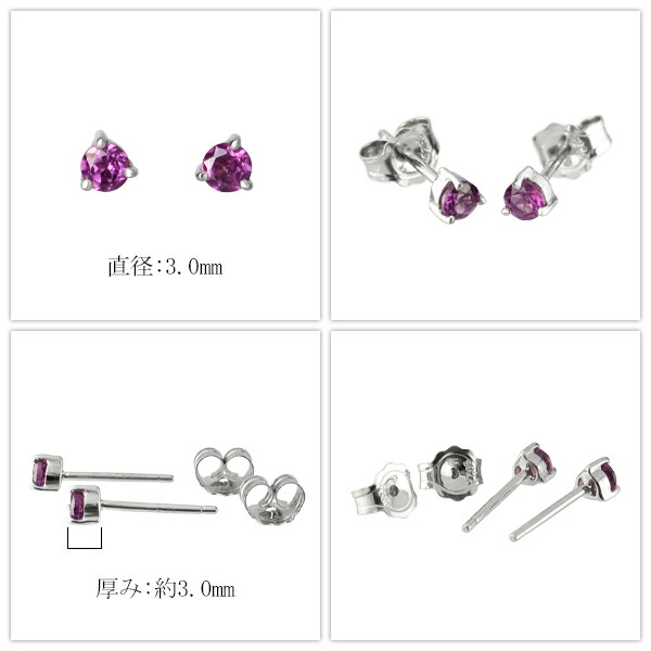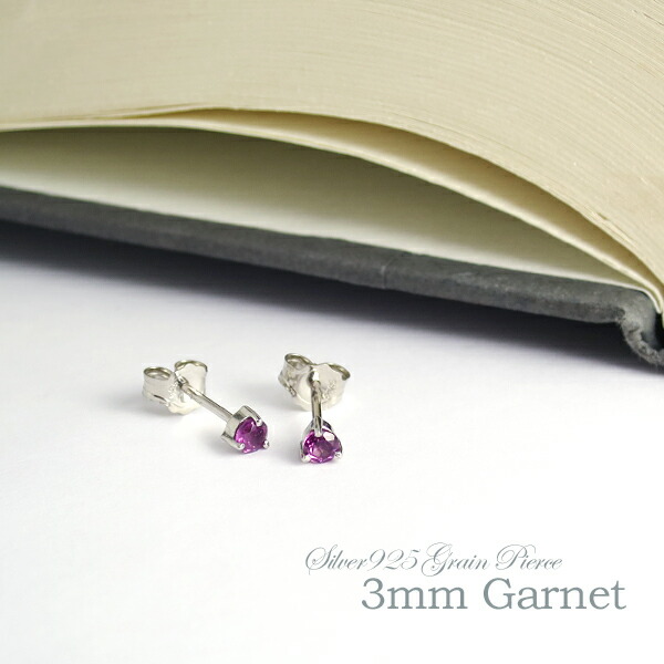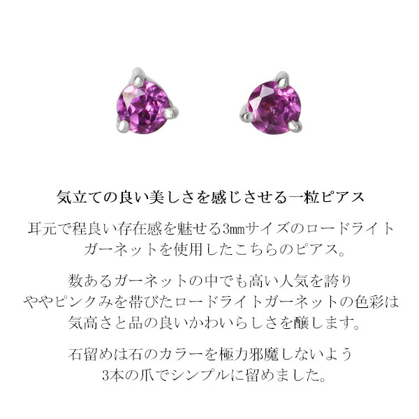 3mm 天然 ロードライトガーネット 一粒 スタッドピアス 2P 両耳用 シルバー925 プラチナコーティング シンプル さりげない 大人 きれい