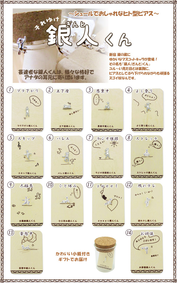 棒人間のようなシンプルなヒト型ピアス「銀人(ぎんと)くん」の登場です!