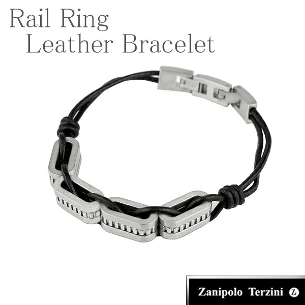Zanipolo Terzini レールリング レザーブレスレット レザー メンズ 牛革 男性用 牛革製品サージカルステンレス メンズブレスレット