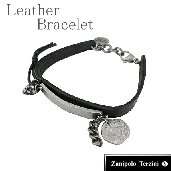 ザニポロタルツィーニ リングフック レザーブレスレット レザー メンズ 牛革 男性用 牛革製品サージカルステンレス 髑髏 ドクロ