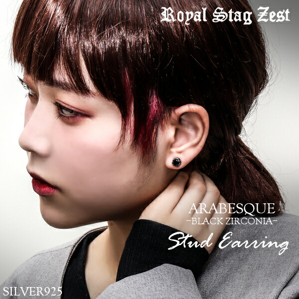 ブラックカラー アラベスク 一粒 スタッドピアス 1P 片耳用 ブラックジルコニア 黒 ラウンド ユニセックス 丸型 火 炎 波 風 植物 ブランド Royal Stag ZEST ロイヤルスタッグ