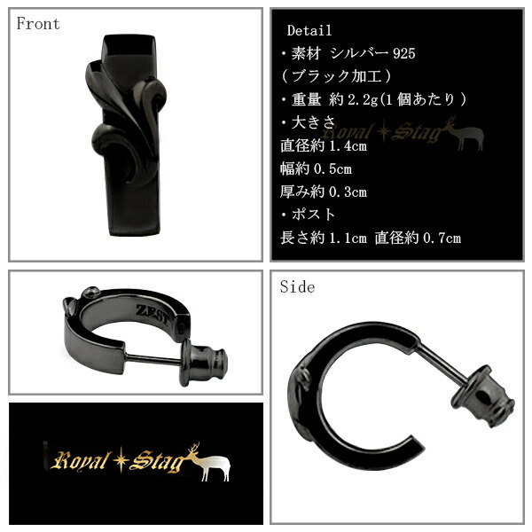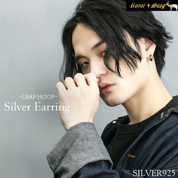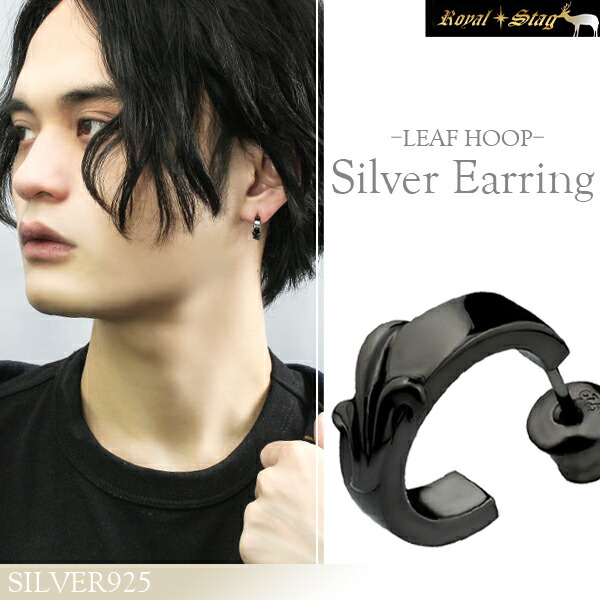 リーフフープ シルバーピアス (1P 片耳用) 【Royal Stag】シルバー925 リング メンズ 男性用 ピアス 片耳 ブランド