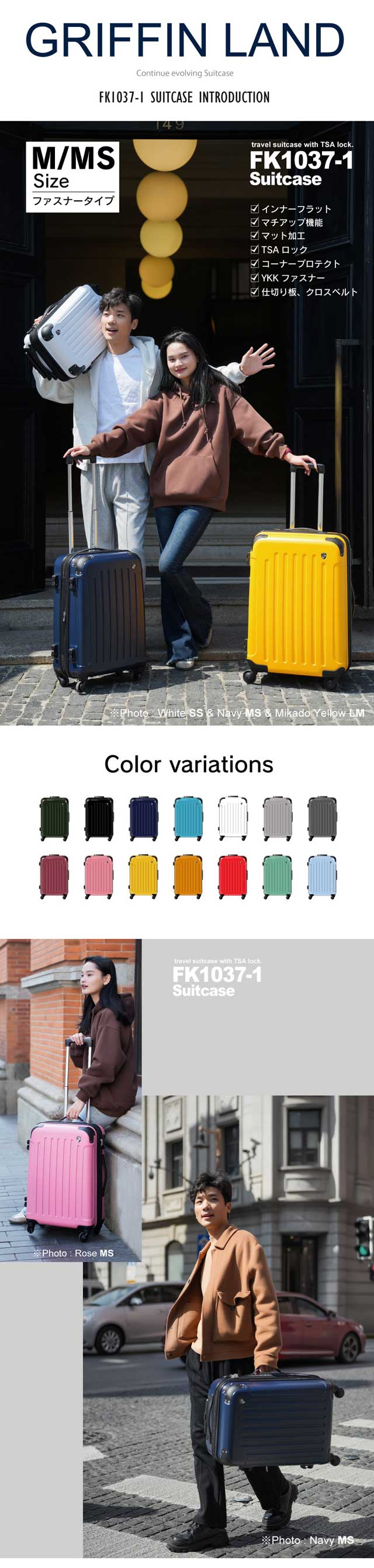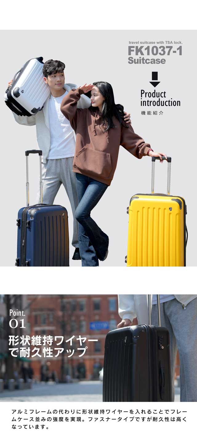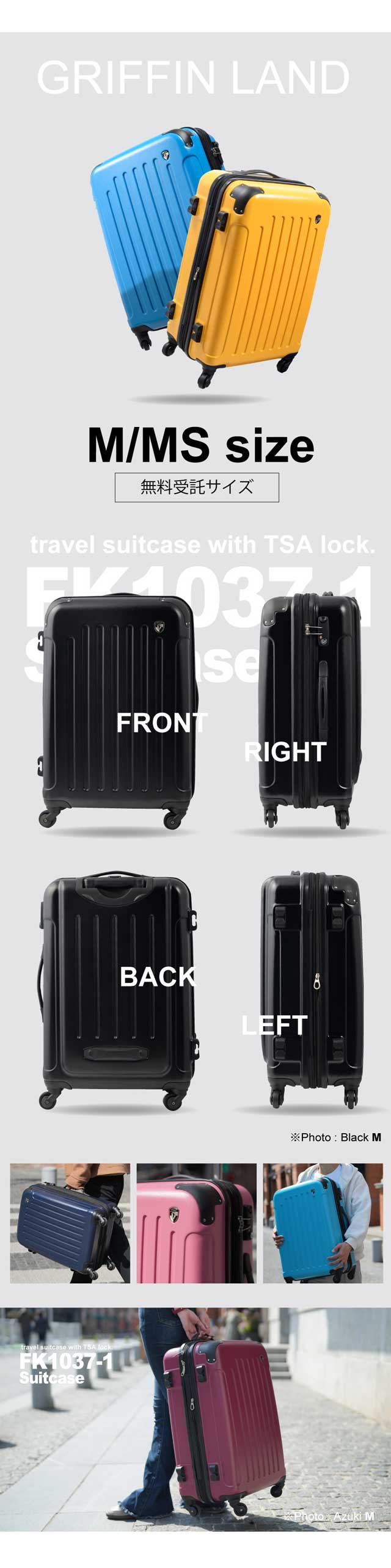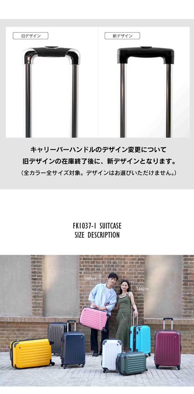 キャリーケース キャリーバッグ スーツケース FK1037-1 Mサイズ MSサイズ 人気 送料無料 中型 軽量 強くて軽い マチアップ メンズ レディース 男女兼用 バッグ ハード ファスナータイプ エンボス シリンダー TSA 4輪 かわいい