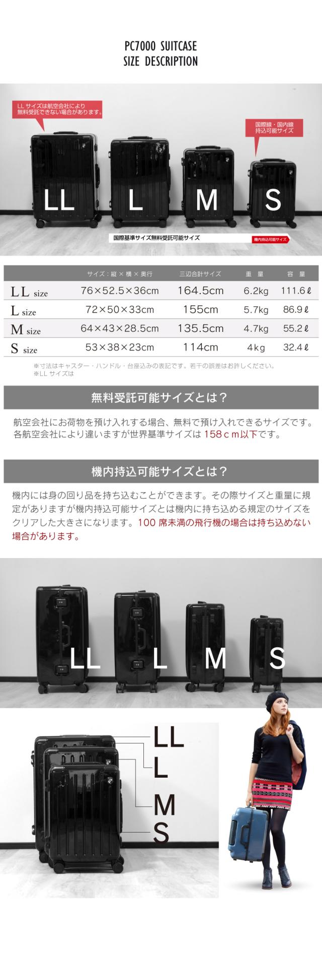 ※Lサイズは航空会社により三辺の合計が規定を超える場合がございますのでご確認くださいませ。