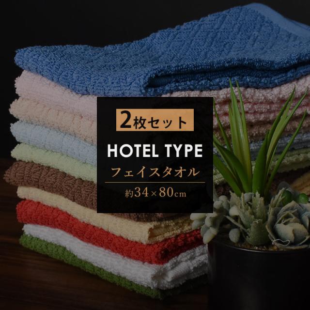 タオル ホテルタイプ フェイスタオル ※2枚セット※ 34×80cm 綿100% ホテル仕様 2枚組 ホテル 無地 10色
