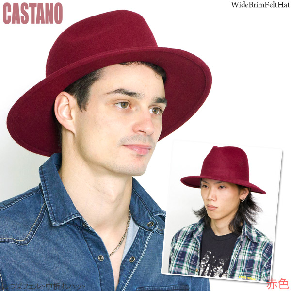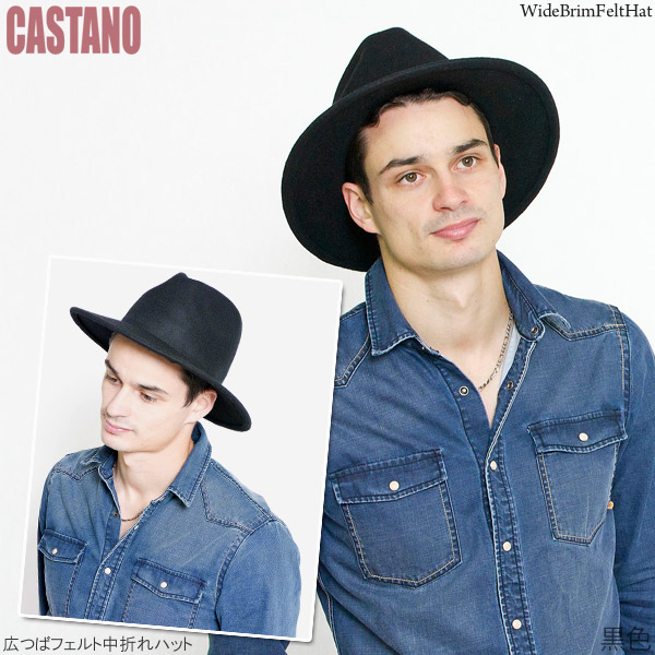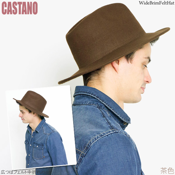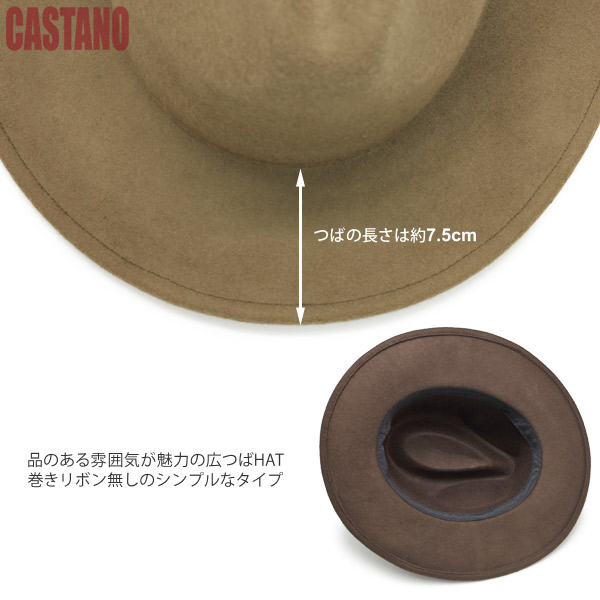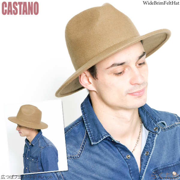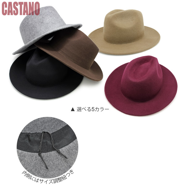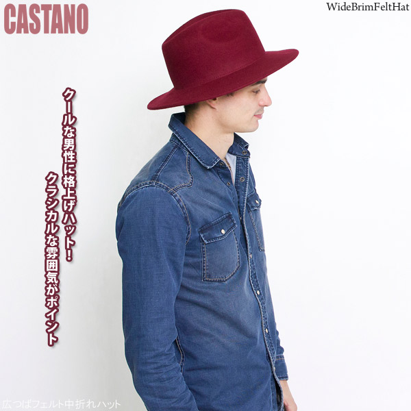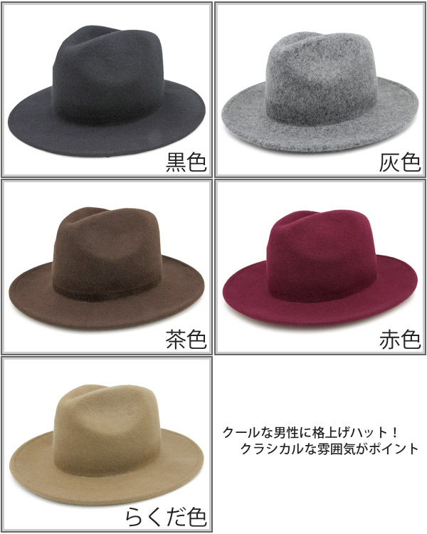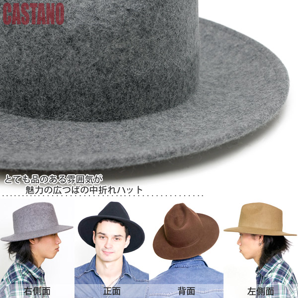 帽子 メンズ ハット つば広 サイズ調整 秋冬 / 広つばフェルト中折れハット