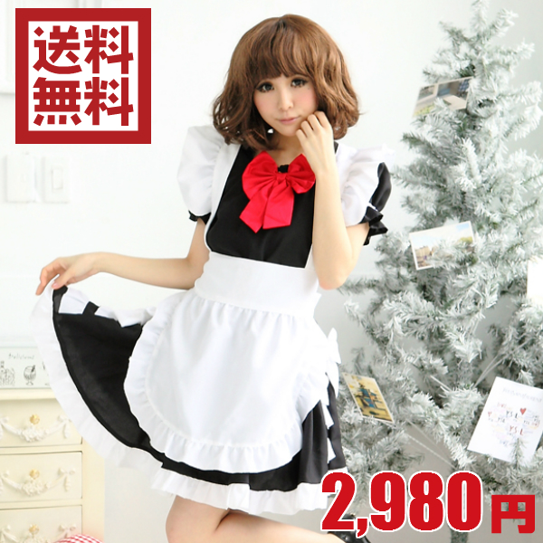 送料無料 大きい リボンのゴスロリ メイド コスチューム ブラック【ランジェリー】【コスプレ】