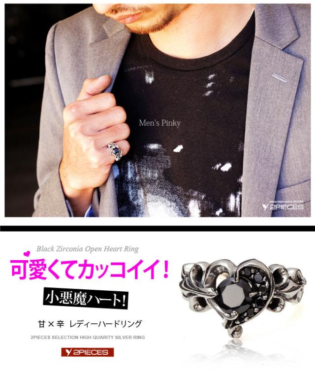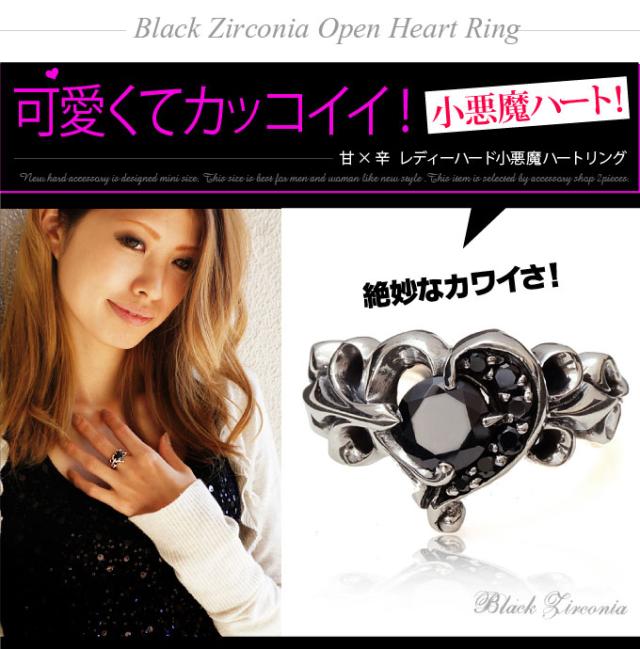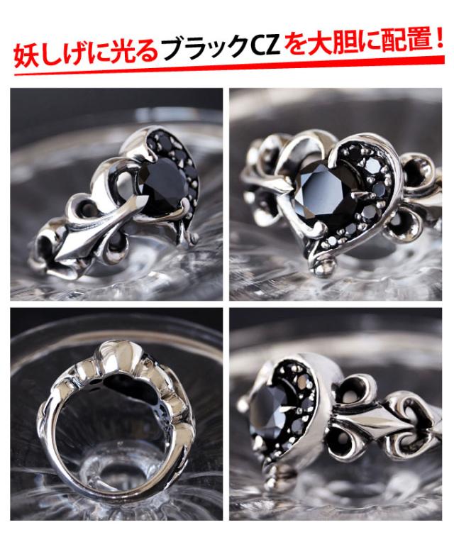 シルバー925製のレディースリングです。オープンハートの中央に妖しげに輝くブラックCZを配置しました。燻しの色合いと相まって、可愛いけどカッコイイ、レディーハードなリングが完成!かわいいけれどカッコいい、まさに小悪魔のようなハートリングです。ハートモチーフだけど男性のピンキーリングなどにもGOODです。■幅:最大1.45cm 厚み:最大0.63cm 重さ:8g (7号計測の場合)■シルバー925■ブラックジルコニア≪サイズ≫ 07号 09号 11号 13号 15号≪c-code≫ブラック