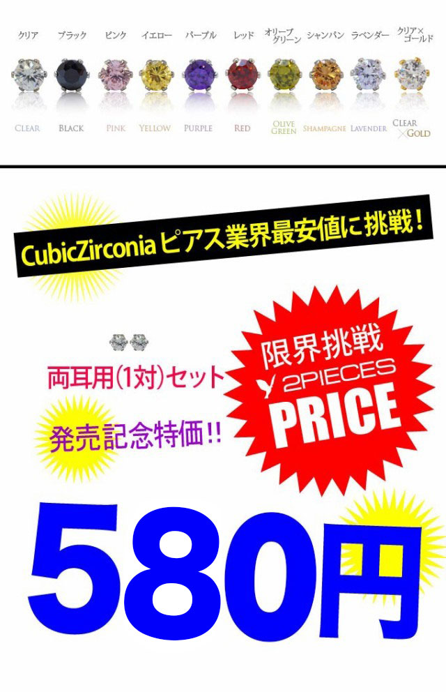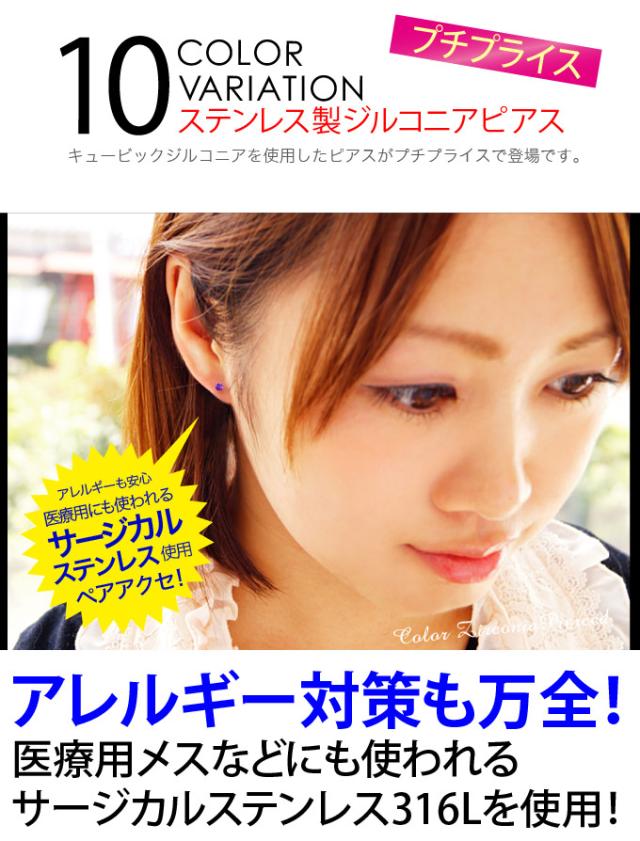 キュービックジルコニアを使用したピアスがプチプライスで登場です。医療器具にも使用されるサージカルステンレスを使用し、アレルギーの出にくいピアスとなっています。おすすめはクリアカラー。もともと『人工的なダイヤモンド』として製作されたキュービックジルコニアですので、クリアカラーのジルコニアはダイヤのような輝きが楽しめます。■ジルコニア:3mm 重さ:0.2g (バラで計測)■ステンレス■CZ(キュービックジルコニア)[c-code] ピンク/パープル/レッド/イエロー/ブラック/レッド/グリーン