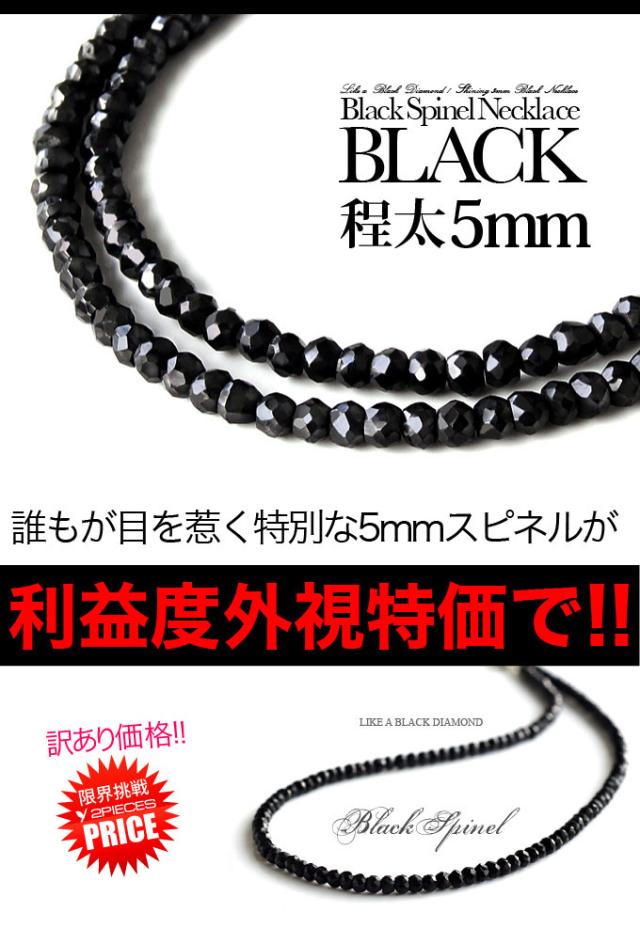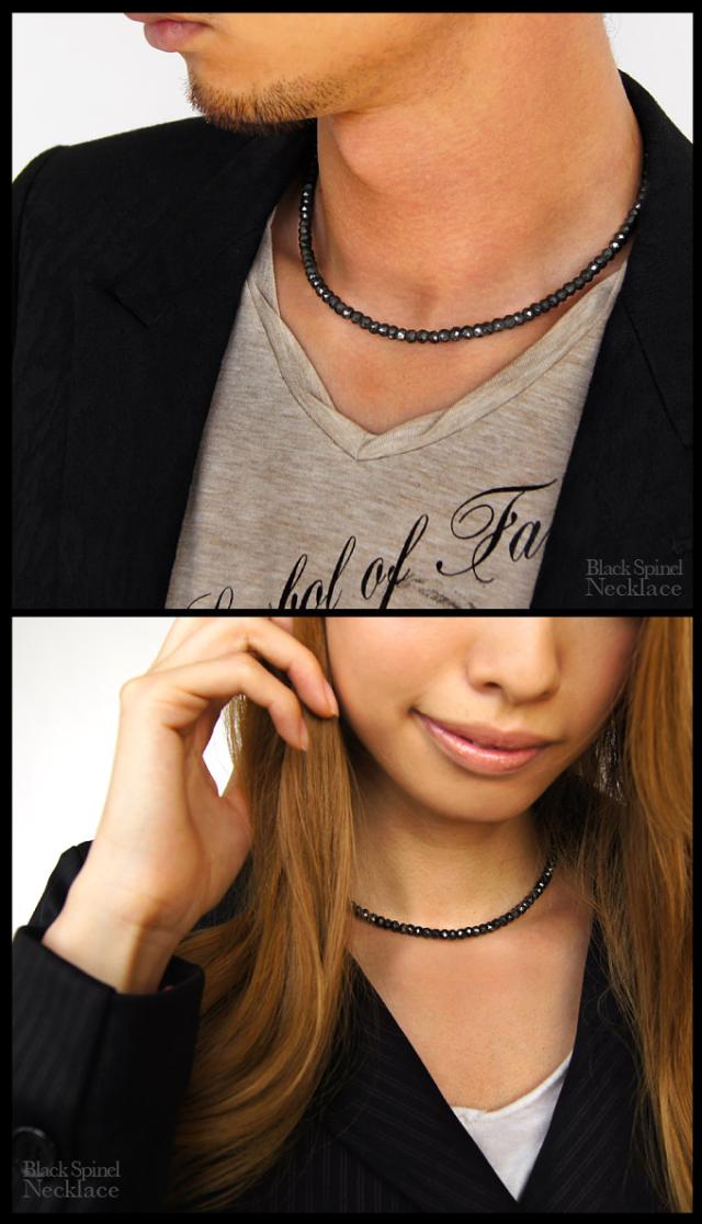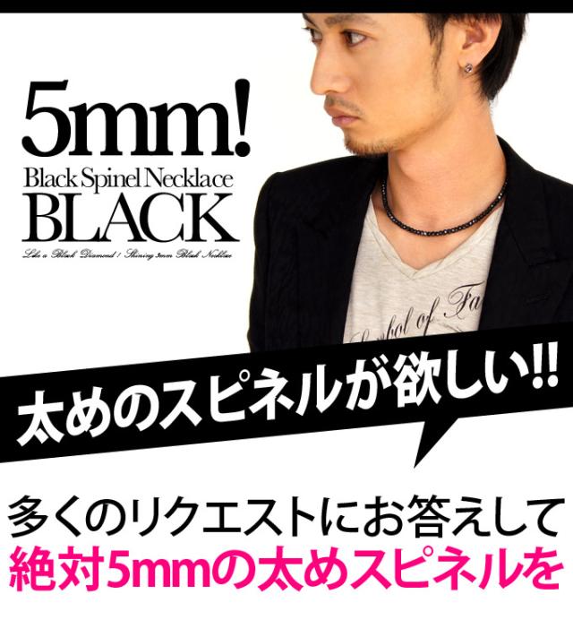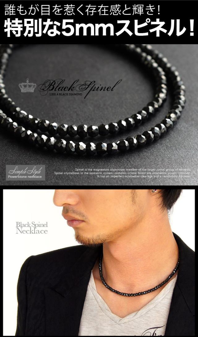 パワーストーンネックレス メンズ ブラックスピネルネックレス 極太 5mm pe1511-SP