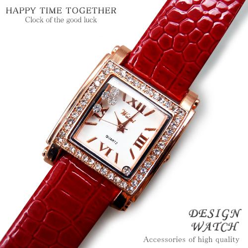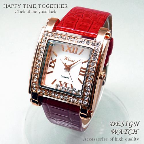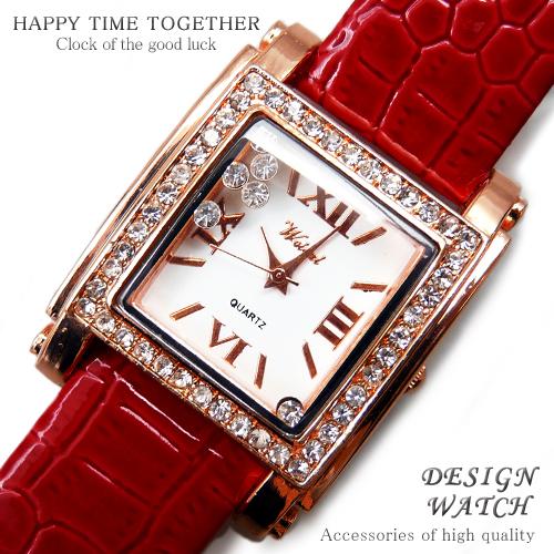 送料無料 超人気レディース腕時計 CZダイヤ仕様 可愛いデザイン レッド赤【 tvs50 】