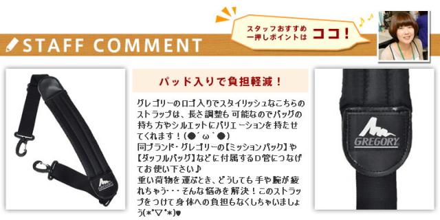 | グレゴリーより便利なショルダーストラップの登場! パッドが付いているので快適に肩に掛ける事ができ、長さ調節も可能です。 また、伸縮性もありフィット感も抜群! グレゴリーのロゴマークがよりスタイリッシュな外観を実現し、重宝すること間違いなしのアイテムです! |