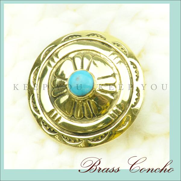 メール便 送料無料 真鍮 コンチョ ターコイズ ゴールド インディアンジュエリー【革財布/ベルトのアクセサリー/ブラス】AB-151-B =┃